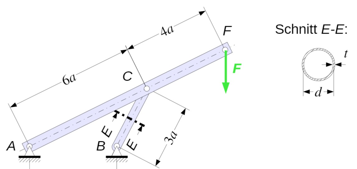 Die Stütze ist beidseitig gelenkig eingespannt. Es handelt sich daher um den zweiten Eulerschen Knickfall.